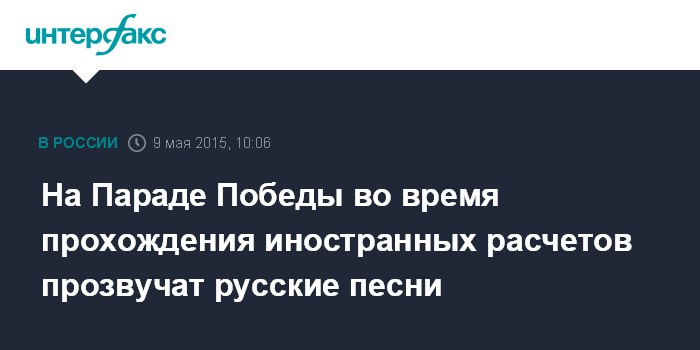 На Параде Победы во время прохождения иностранных расчетов прозвучат русские песни