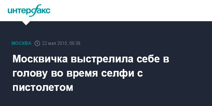 Москва. 22 мая. INTERFAX.RU - Молодая женщина получила тяжелое ранение, случайно выстрелив себе в голову во время попытки сфотографироваться с оружием, сообщили "Интерфаксу" в пресс-службе столичной полиции.