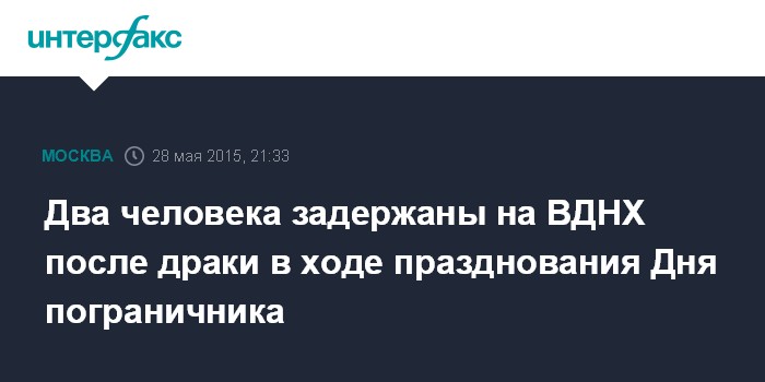 Москва. 28 мая. INTERFAX.RU - Несколько человек, отмечавших День пограничника, подрались на ВДНХ. Один из них госпитализирован, еще двое задержаны, сообщили "Интерфаксу" в пресс-службе столичного главка МВД.