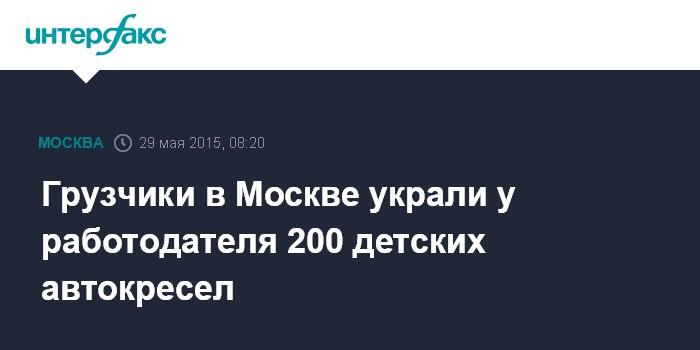 Москва. 29 мая. INTERFAX.RU - Двое грузчиков в течение двух лет украли у своего работодателя 200 детских автомобильных кресел, сообщили "Интерфаксу" в пресс-службе московской полиции.