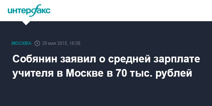 Москва. 29 мая. INTERFAX.RU - Доход столичного учителя после изменения системы оплаты труда вырос почти в два раза, заявил мэр Москвы Сергей Собянин в интервью телеканалам "Россия-24", "Москва 24" и "Россия-1" в пятницу.