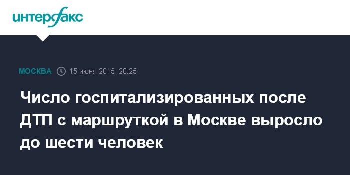 Москва. 15 июня. INTERFAX.RU - Число госпитализированных в результате столкновения маршрутки и грузовика на северо-востоке Москвы увеличилось до шести человек, сообщили "Интерфаксу" в пресс-службе столичного управления ГИБДД.