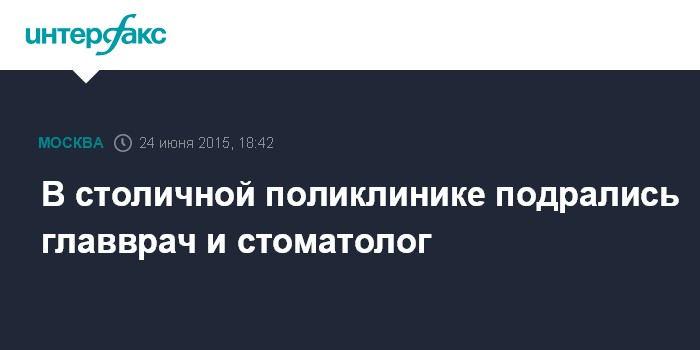 Москва. 24 июня. INTERFAX.RU - Сотрудник столичной стоматологической поликлиники №26, неоднократно нарушавший порядок работы, отказался писать объяснительную и избил главврача, сообщили "Интерфаксу" в среду в пресс-службе столичного департамента здравоохранения.