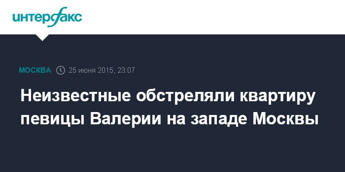 Неизвестные обстреляли квартиру певицы Валерии на западе Москвы