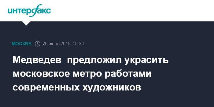 Москва. 26 июня. INTERFAX.RU - Премьер-министр РФ Дмитрий Медведев поручил министерству культуры узнать до 15 августа о возможности оформления столичного метро произведениями современных художников.