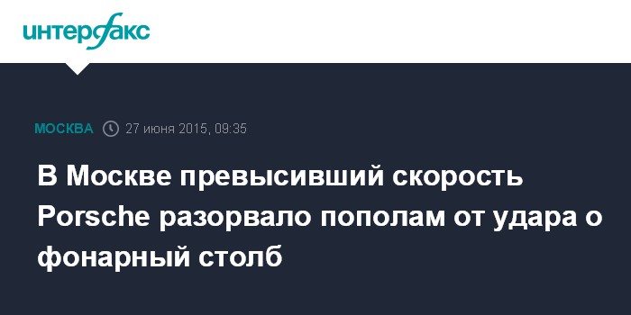 Москва. 27 июня. INTERFAX.RU - Спорткар Porsche 911 врезался в фонарный столб в центре столицы, водитель и пассажир погибли, сообщили "Интерфаксу" в пресс-службе управления ГИБДД Москвы.
