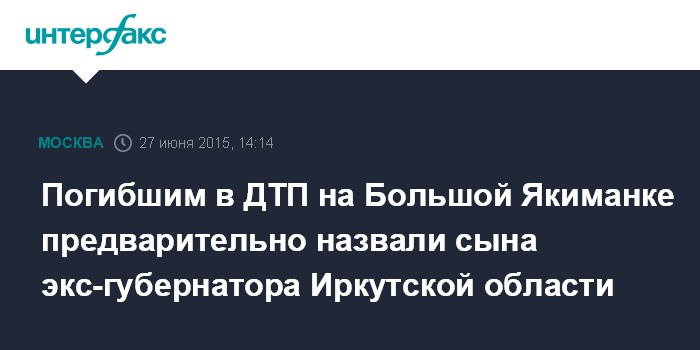 Погибшим в ДТП на Большой Якиманке предварительно назвали сына экс-губернатора Иркутской области