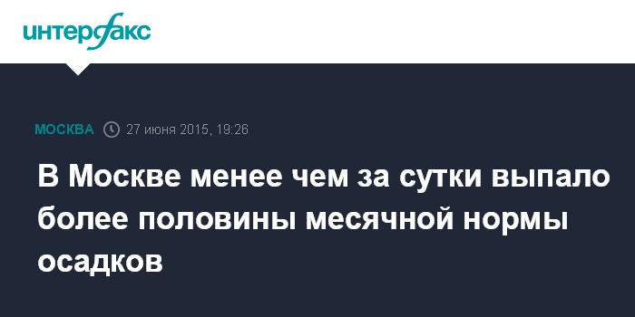 Москва. 27 июня. INTERFAX.RU - Южный волновой атмосферный фронт принес в столичный регион рекордное количество осадков, сообщили в субботу "Интерфаксу" в Гидрометеобюро Москвы и Московской области.