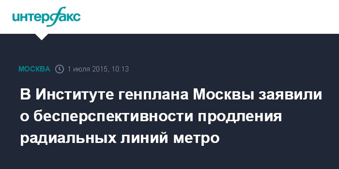Москва. 1 июля. INTERFAX.RU - Продление существующих радиальных линий метро от центра города не может продолжаться бесконечно, заявил "Интерфаксу" ио начальника Института генплана Москвы Михаил Крестмейн в среду.