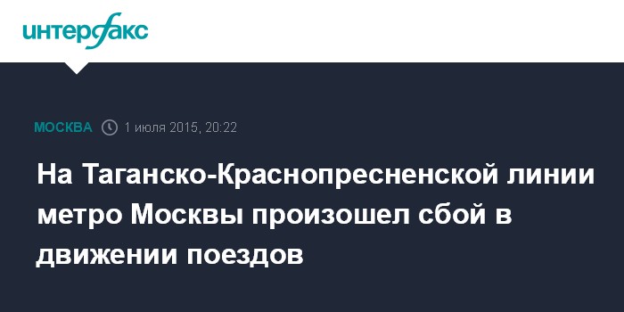 Москва. 1 июля. INTERFAX.RU - Из-за неисправного состава в среду вечером произошел сбой в графике движения поездов на юго-восточном участке Таганско-Краснопресненской линии московского метрополитена.
