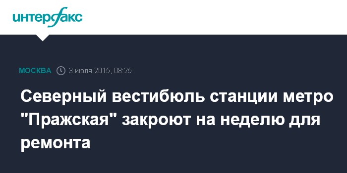 Москва. 3 июля. INTERFAX.RU - В связи с работами по благоустройству северный вестибюль станции московского метро "Пражская" (со стороны последнего вагона из центра) закрывается для пассажиров, сообщили "Интерфаксу" в пресс-службе метрополитена в пятницу.