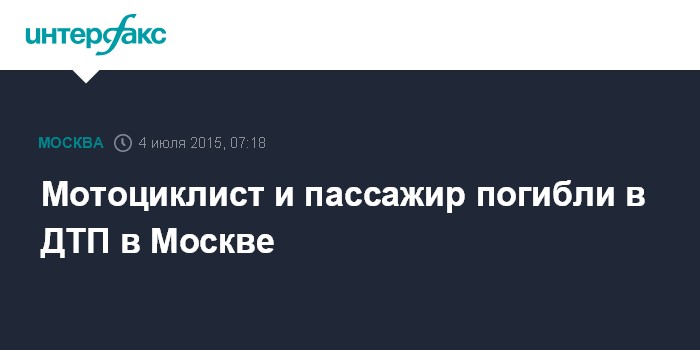 Москва. 4 июля. INTERFAX.RU - Мотоциклист и его пассажирка погибли на востоке столицы после столкновения с фонарным столбом, сообщили в субботу "Интерфаксу" в управлении ГИБДД Москвы.
