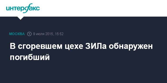 Москва. 9 июля. INTERFAX.RU - Сильно обгоревшее тело человека обнаружено на месте пожара на территории завода ЗИЛ в Москве, сообщил "Интерфаксу" источник в правоохранительных органах.