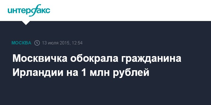 Москвичка обокрала гражданина Ирландии на 1 млн рублей