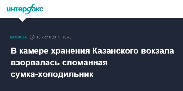 Москва. 16 июля. INTERFAX.RU - Хлопок в камере хранения Казанского вокзала был вызван неисправной сумкой-холодильником, сообщили "Интерфаксу" в пресс-службе управления на транспорте МВД России по Центральному федеральному округу.