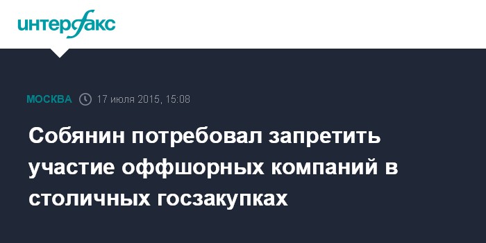 Москва. 17 июля. INTERFAX.RU - Мэр столицы Сергей Собянин поручил обеспечить безусловное исполнение требований федерального законодательства о запрете участия оффшорных компаний в государственных закупках.