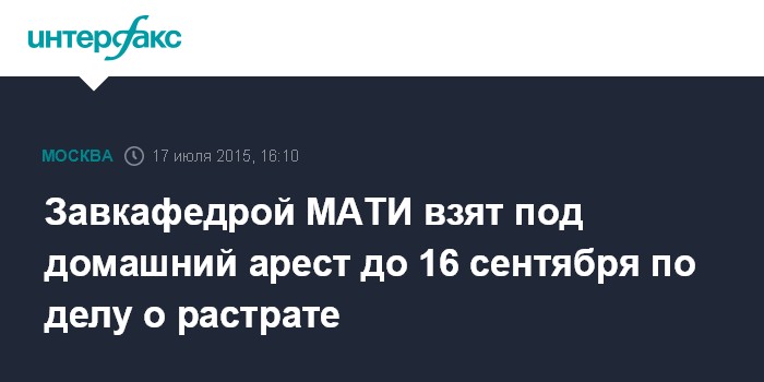 Завкафедрой МАТИ взят под домашний арест до 16 сентября по делу о растрате