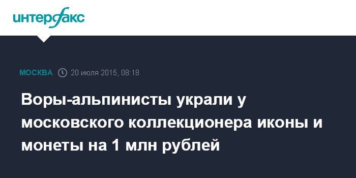 Москва. 20 июля. INTERFAX.RU - Грабители отобрали у столичного коллекционера старые иконы и монеты, проникнув к нему в квартиру с крыши, сообщили "Интерфаксу" в пресс-службе московской полиции.