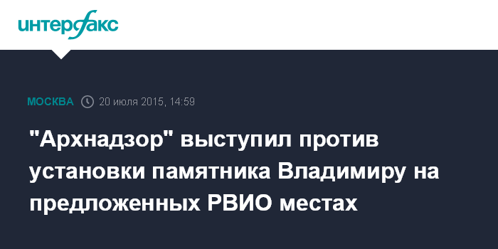 Москва. 20 июля. INTERFAX.RU - В общественном движении "Архнадзор" считают неудачными три варианта установки в Москве памятника князю Владимиру, которые выбрали эксперты Российского военно-исторического общества (РВИО) - Зарядье, Боровицкую и Лубянскую площади.