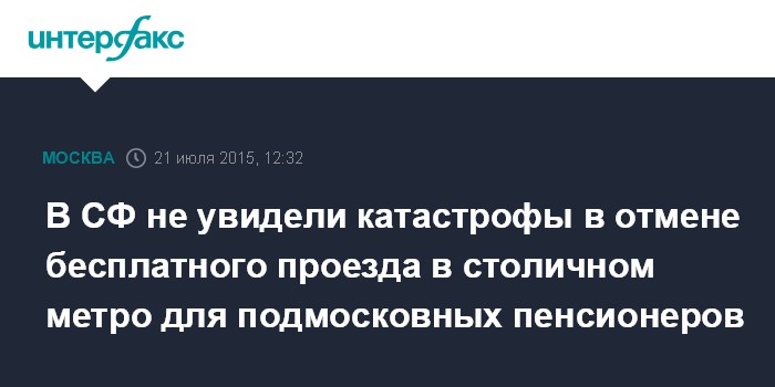 В СФ не увидели катастрофы в отмене бесплатного проезда в столичном метро для подмосковных пенсионеров