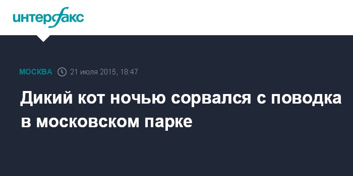 Москва. 21 июля. INTERFAX.RU - Дикого кота сервала, сбежавшего от хозяйки во время ночной прогулки в столичном парке, долго искать не пришлось: животное проголодалось и само вышло к полицейским, сообщили в пресс-службе управы Хорошевского района Москвы.