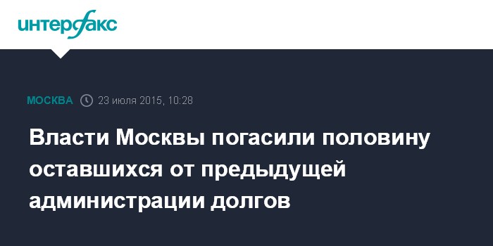 Власти Москвы погасили половину оставшихся от предыдущей администрации долгов