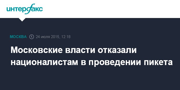 Москва. 24 июля. INTERFAX.RU - Московские власти в очередной раз отказали националистам в проведении пикета, сообщил лидер объединения "Русские" Дмитрий Демушкин.