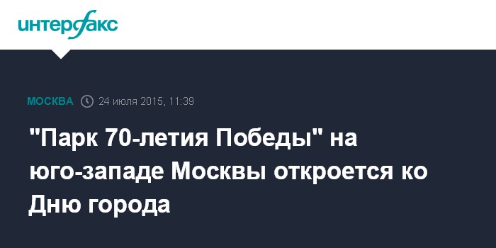 Москва. 24 июля. INTERFAX.RU - "Парк 70-летия Победы" на юго-западе Москвы откроется ко Дню города, сообщил мэр столицы Сергей Собянин в пятницу в беседе с ветеранами во время осмотра хода работ по созданию рекреационной зоны.