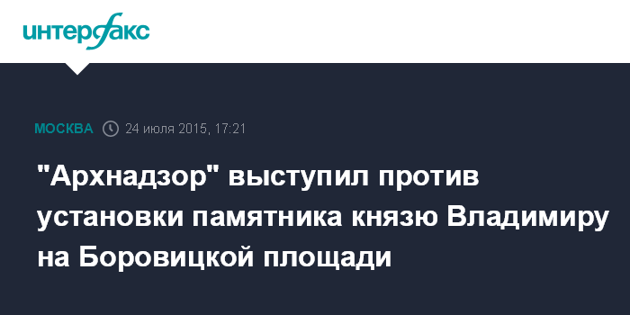 Москва. 24 июля. INTERFAX.RU - Вариант установки памятника князю Владимиру на Боровицкой площади в Москве неприемлем, считают в общественном движении "Архнадзор".