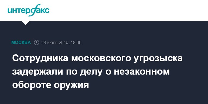 "Сотрудники УСБ московской полиции в ходе проведения оперативно-розыскных мероприятий задержали сотрудника Уголовного розыска по подозрению в преступлении, связанном с незаконным оборотом оружия", - сказал сотрудник пресс-службы.