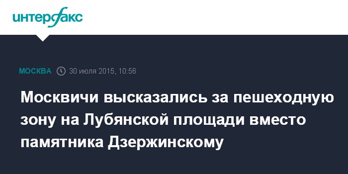Москвичи высказались за пешеходную зону на Лубянской площади вместо памятника Дзержинскому