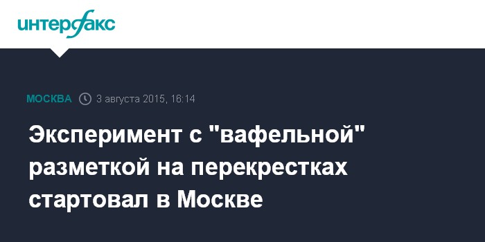 Москва. 3 августа. INTERFAX.RU - В Москве стартовал федеральный эксперимент по применению дорожной разметки, названной в народе "вафельницей", сообщили "Интерфаксу" в пресс-службе департамента ЖКХ и благоустройства столицы в понедельник.