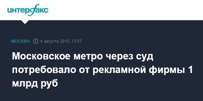 Московское метро через суд потребовало от рекламной фирмы 1 млрд руб