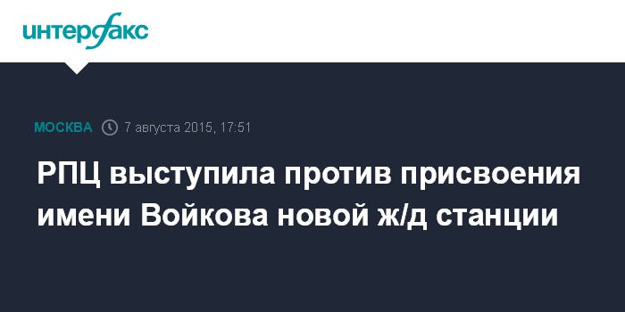 Москва. 7 августа. INTERFAX.RU -В РПЦ подвергли критике идею назвать новую станцию Московской кольцевой железной дороги именем Петра Войкова - одного из организаторов убийства семьи Николая II.