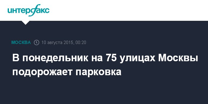 Москва. 10 августа. INTERFAX.RU - Новый, прогрессивный порядок оплаты парковки начинает действовать с понедельника на 75 улицах, бульварах, площадях, переулках, проездах и тупиках в пределах Бульварного кольца, сообщили "Интерфаксу" в департаменте транспорта и развития дорожно-транспортной инфраструктуры Москвы.