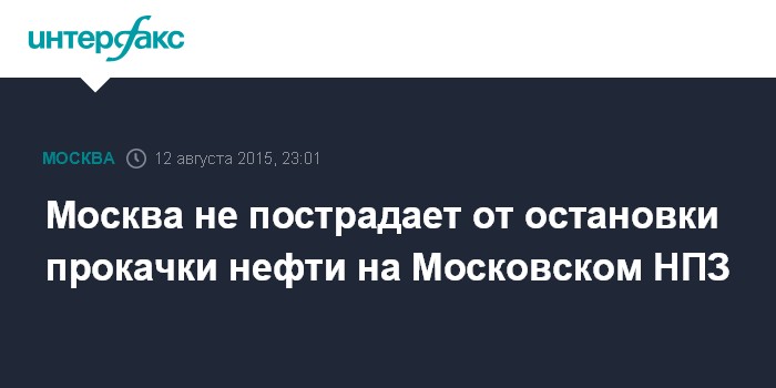 Москва. 12 августа. INTERFAX.RU - Приостановка прокачки нефтепродуктов с Московского НПЗ не повлияет на обеспечение региона топливом, сообщили Агентству нефтяной информации (АНИ) в пресс-службе завода.