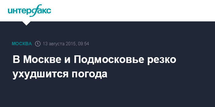 Москва. 13 августа. INTERFAX.RU - Характер погоды в столичном регионе в ближайшие сутки резко изменится: похолодает, пойдут дожди, сообщили "Интерфаксу" в Гидрометеобюро Москвы и Московской области в четверг.