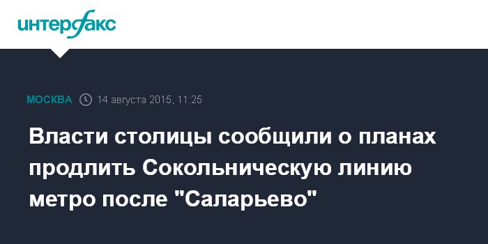 Власти столицы сообщили о планах продлить Сокольническую линию метро после "Саларьево"