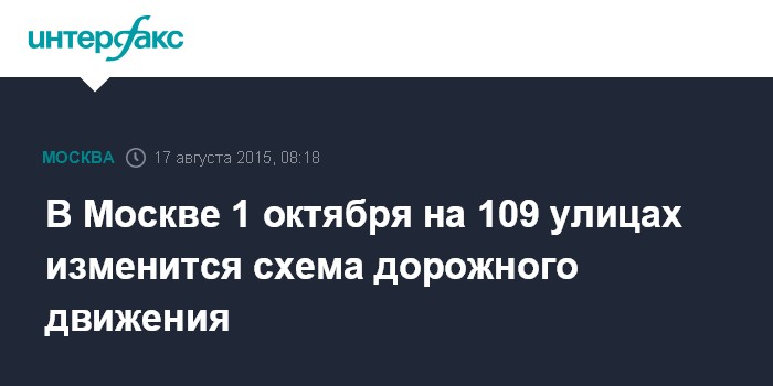 В Москве 1 октября на 109 улицах изменится схема дорожного движения