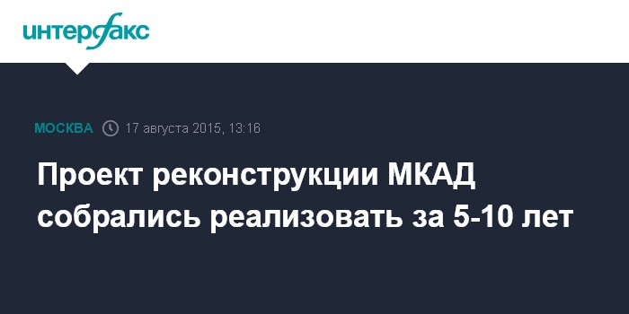 Москва. 17 августа. INTERFAX.RU - Москва ведет переговоры с несколькими инвесторами о строительстве дополнительных съездов и разгонных полос на Московской кольцевой автодороге, сообщил заместитель мэра Москвы по вопросам градостроительной политики и строительству Марат Хуснуллин в интервью телеканалу "Россия 24" в понедельник. По его словам, проект реконструкции МКАД может быть реализован за 5-10 лет.