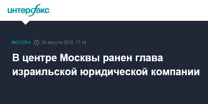 Москва. 24 августа. INTERFAX.RU - Главой юридической компании, имеющий гражданство Израиля, был ранен в понедельник в центре Москвы несколькими выстрелами из огнестрельного оружия, сообщил "Интерфаксу" источник в правоохранительных органах.
