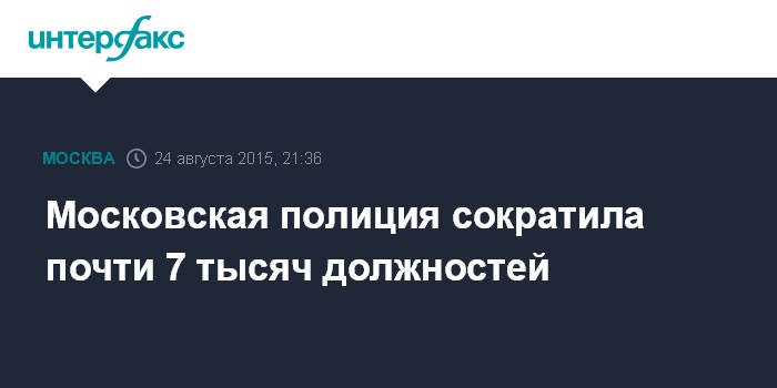 Москва. 24 августа. INTERFAX.RU - Сокращения штата столичной полиции составило 10%, однако не повлияло на безопасность в городе, заявил начальник ГУ МВД РФ по Москве Анатолий Якунин.