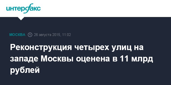 Реконструкция четырех улиц на западе Москвы оценена в 11 млрд рублей
