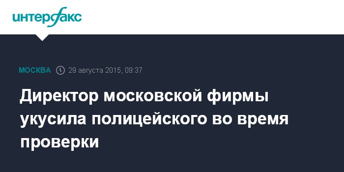 Москва. 29 августа. INTERFAX.RU - Директор по развитию одной из столичных фирм укусила за руку полицейского, пришедшего осматривать помещение организации, сообщил "Интерфаксу" в субботу источник в правоохранительных органах