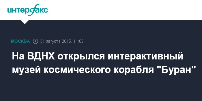 Москва. 31 августа. INTERFAX.RU - Интерактивный музей многоразового космического корабля "Буран" открылся на ВДНХ, говорится в сообщении пресс-службы Роскосмоса, поступившем в "Интерфакс".