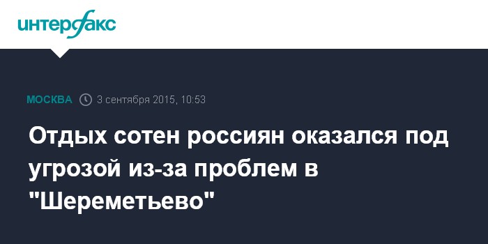 Москва. 3 сентября. INTERFAX.RU - Сотни российских туристов могут остаться без оплаченных зарубежных турпоездок, так как их паспорта с готовыми визами "зависли" в грузовом терминале аэропорта "Шереметево" из-за смены основного карго-оператора, сообщила "Интерфаксу" в четверг пресс-секретарь Российского союза туриндустрии (РСТ) Ирина Тюрина.