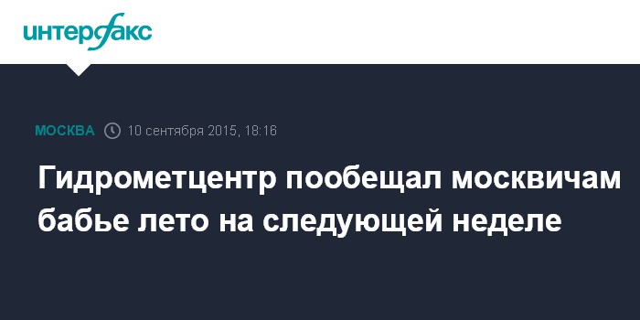 Москва. 10 сентября. INTERFAX.RU - Бабье лето придет в Московский регион в воскресенье и продлится несколько дней, сообщил "Интерфаксу" в четверг директор Гидрометцентра Роман Вильфанд.
