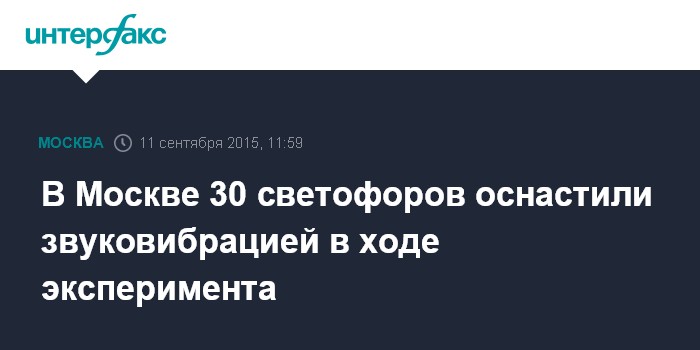 Москва. 11 сентября. INTERFAX.RU - Столичные власти в качестве эксперимента оснащают светофоры звуковибрационными модулями, заявил начальник ГКУ "Центр организации дорожного движения" Вадим Юрьев.