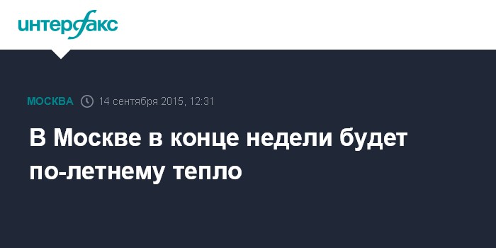 Москва. 14 сентября. INTERFAX.RU - В Москве до конца наступившей недели сохранится теплая погода, сообщает Гидрометцентр России в понедельник.