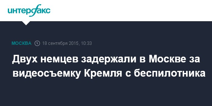 Москва. 18 сентября. INTERFAX.RU - Двое граждан Германии задержаны за запуск беспилотника над территорией Московского Кремля, сообщили "Интерфаксу" в пятницу в правоохранительных органах.